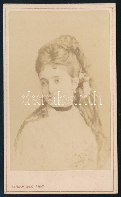 cca 1868 Adelina Patti (1843-1919) olasz operaénekesnő, keményhátú fotó Bergamasco műterméből, 10,5×6,5 cm