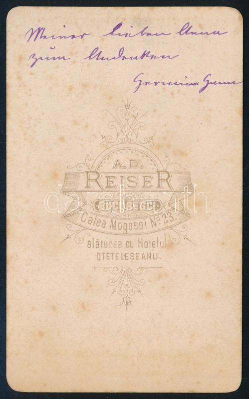 cca 1870-1880 Anya portréja gyermekével, vizitkártya A. D. Reiser bukaresti műterméből, a hátoldalon autográf sorokkal...