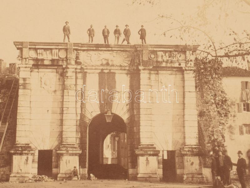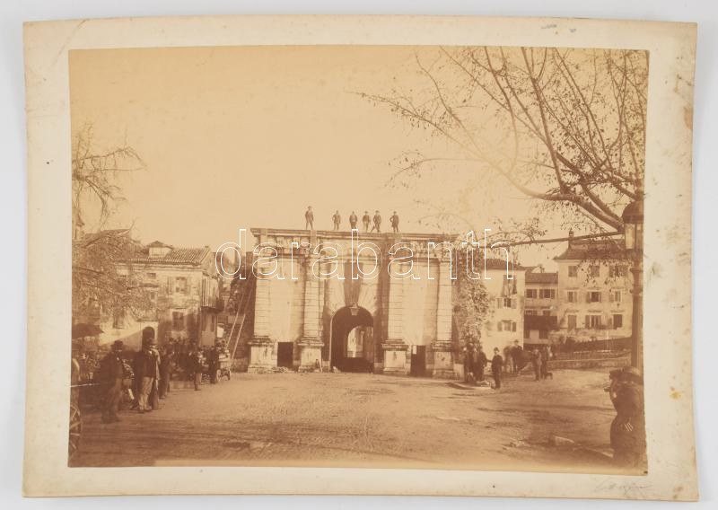cca 1890-1900 Bartolomeo Borri (1842-1924): Görögország, Korfu, "Porta Reale" (lebontották 1893-ban), nagyméretű fotó kartonon, feliratozva, foltos, 22x28 cm/ cca 1890-1900 Bartolomeo Borri (1842-1924): Greece, Corfu, Porta Reale (demolished in 1893), large-size photo on board, spotty, 22x28 cm