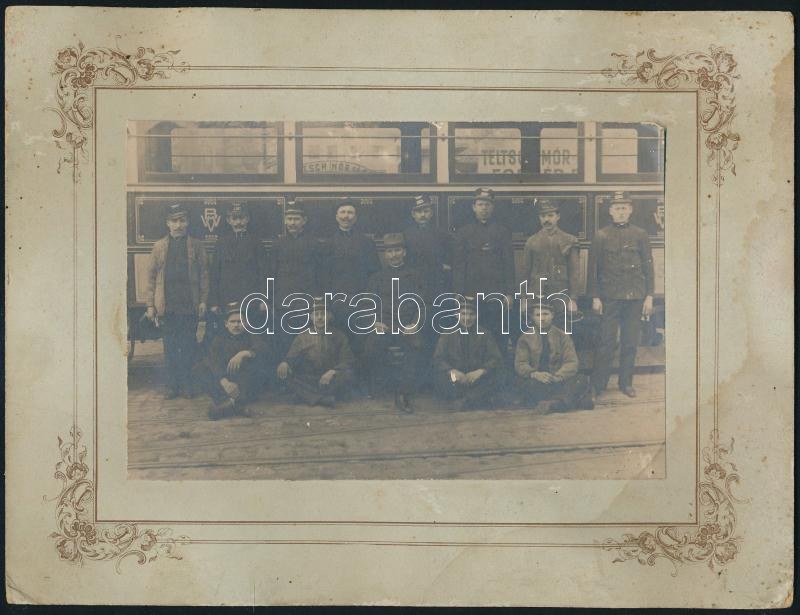 cca 1910 Villamos személyzettel, kartonra kasírozott fotó, karton foltos, 10×15 cm
