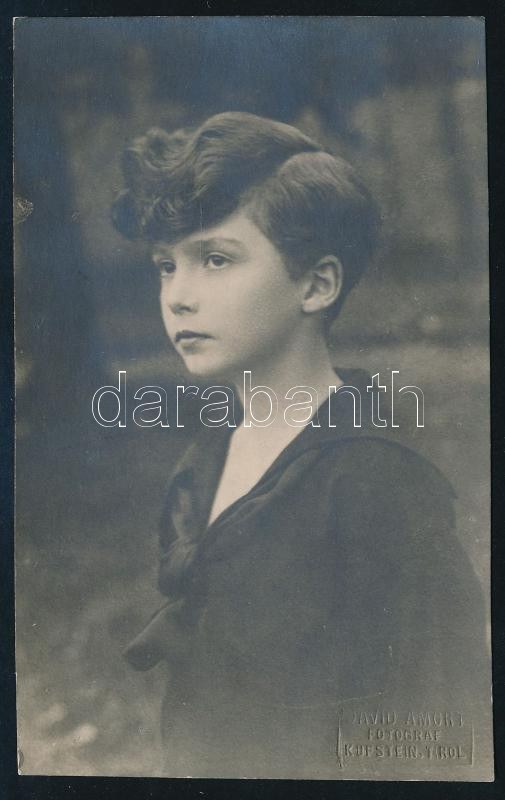 cca 1922 Habsburg Ottó (1912-2011) trónörökös fotója, David Amort kufsteini fotós szárazpecsétjével, szép állapotban...