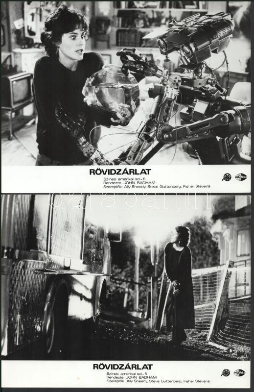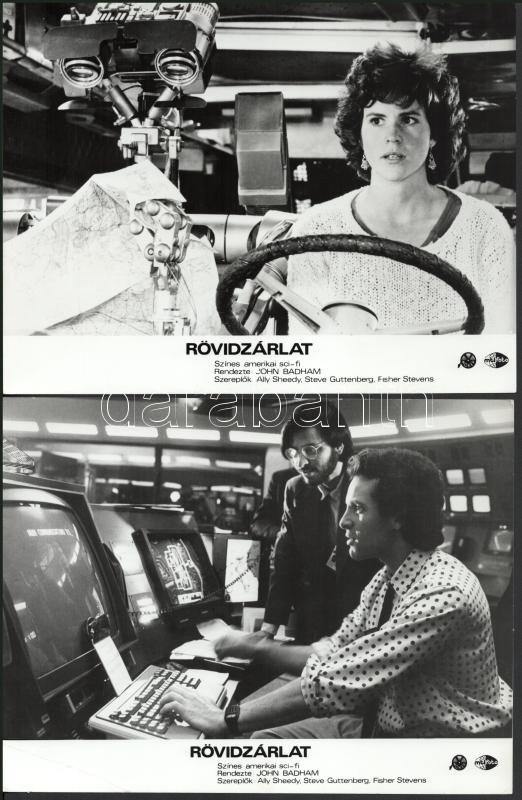 cca 1989 előtt készült, "Rövidzárlat" című amerikai sci-fi film jelenetei és szereplői, 7 db vintage produkciós filmfotó (vitrinfotó, lobbyfotó) ezüst zselatinos fotópapíron, a használatból eredő (esetleges) kisebb hibákkal, 18x24 cm