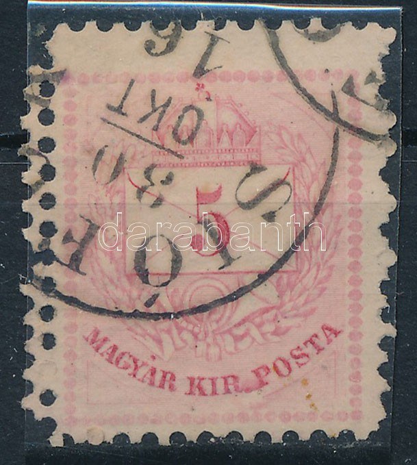 1874 5kr a baloldalon kettős fogazással, nagyon ritka / Mi 17 double-perforated on the left (ex Lovász...