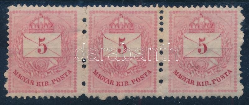 1874 5kr hármascsík / Mi 17 stripe of 3 (MBK kb 2000 p)