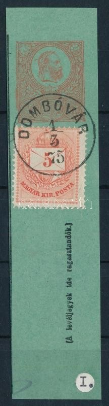 1874 5kr I. típus Réznyomat díjjegyes kivágáson, durva gyöngyjavítással / Mi 17 with retouche on PS-cutting "DOMBÓVÁR" ...