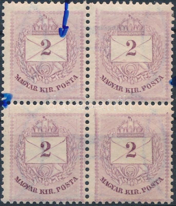 1881 2kr négyestömb karcokkal, utánmetszéssel (ex Lovász) / block of 4 with scratches, retouche