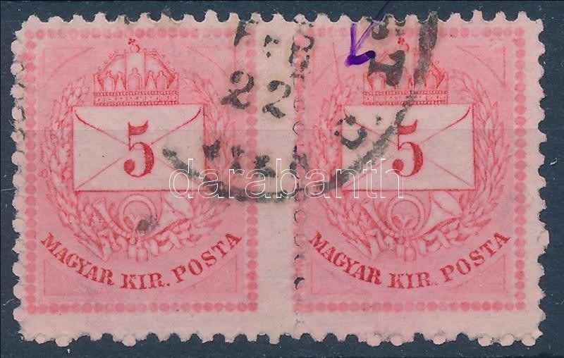 1881 5kr pár végigfutó karccal, erős méretkülönbséggel (ex Lovász) / Mi 23 pair with scratches, different sizes