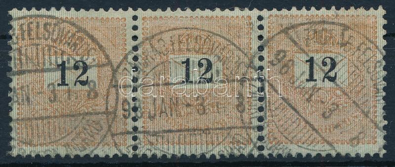 1889 12kr hármascsík: típusösszefüggés foltokkal / with paint spots