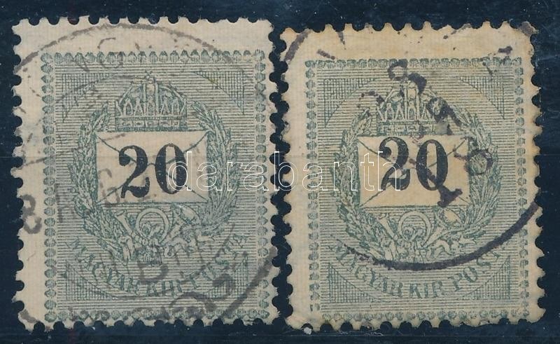 1889 2 db 20kr lecsúszott és felcsúszott értékszámok / Mi 35 2 stamps with shifted perforation