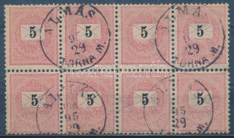 1889 5kr 8-as tömb típusösszefüggés "ALMÁS / TORNA M."