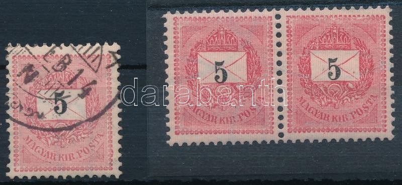 1889 5kr pár elcsúszott értékszámokkal + támpéldány / pair with shifted numbers