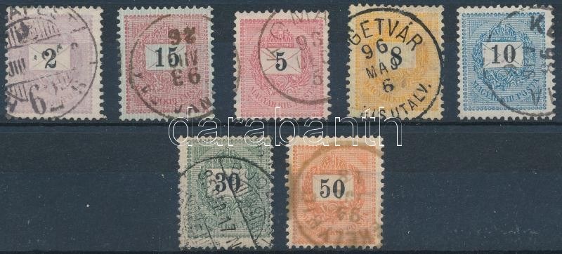 1889 7 db krajcáros bélyeg "nyitott boríték" tévnyomattal / 7 stamps with plate variety