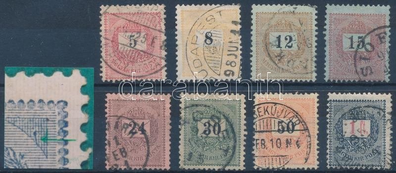 1889 8 db krajcáros bélyeg ugyanazzal a lemezhibával / plate flaw