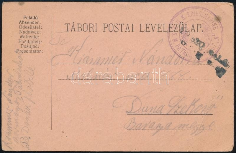1917 Tábori posta levelezőlap / Field postcard "K.U.K. KRIEGSMARINE / S.M. PATROUILLENBOOT B"