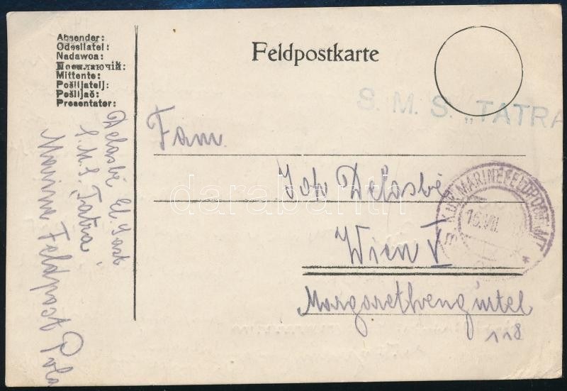 1918 Tábori posta levelezőlap / Field postcard "S.M.S. TATRA"