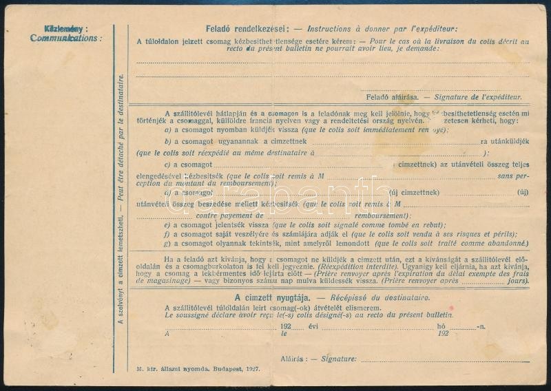 1934 Szállítólevél Arcképek 1f + 4f + 30f + 2 x 50f bérmentesítéssel Svájcba küldve ...
