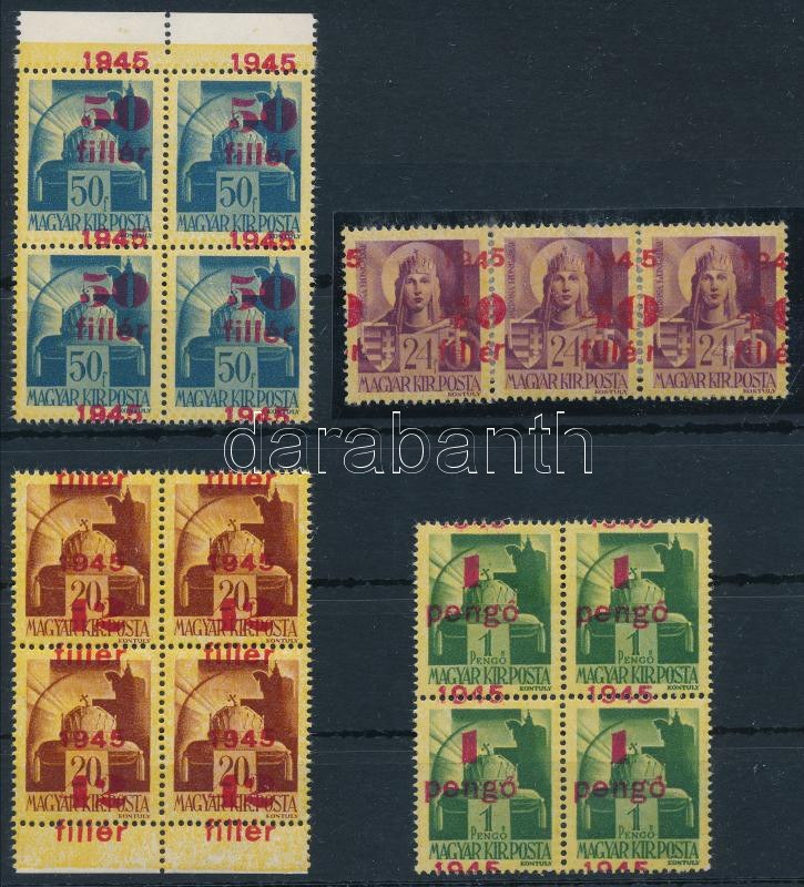 1945 4 klf összefüggés elcsúszott felülnyomással / 4 units with shifted overprint
