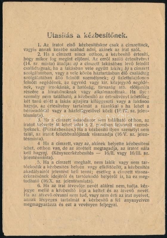 1946.03.05-én feladott Kézbesítési bizonyítvány, amelyet 1946.06.28-án továbbküldtek 240.000 Milpengő bérmentesítéssel ...