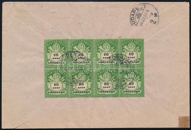 1946 (27. díjszabás) Levél 50 ezer AP 8-as tömbbel bérmentesítve / Mi 936 block of 8 on cover