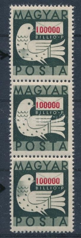 1946 Billiós 100.000 BP hármascsík ráhel csíkkal / Mi 925 stripe of 3, paint stripe