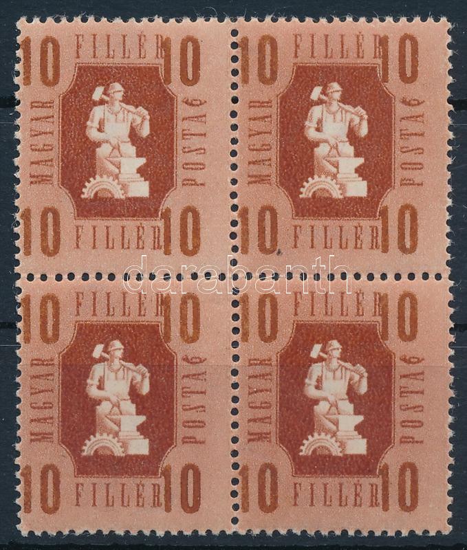 1946 Forint-fillér 10f négyestömb elfogazva / Mi 948 block of 4 with shifted perforation