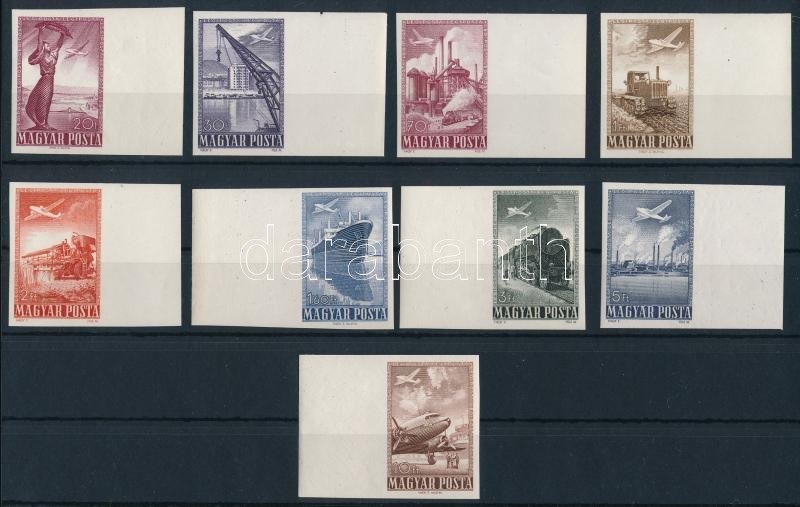 1950 Repülő ívszéli vágott sor (25.000) / Mi 1120-1128 imperforate margin set