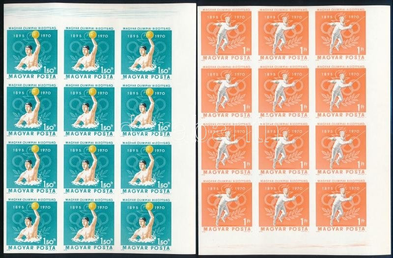 1970 Magyar Olimpiai Bizottság vágott sor ívsarki 12-es tömbökben, a legtöbb nyomdai jelzésekkel (42.000) / Mi 2616...