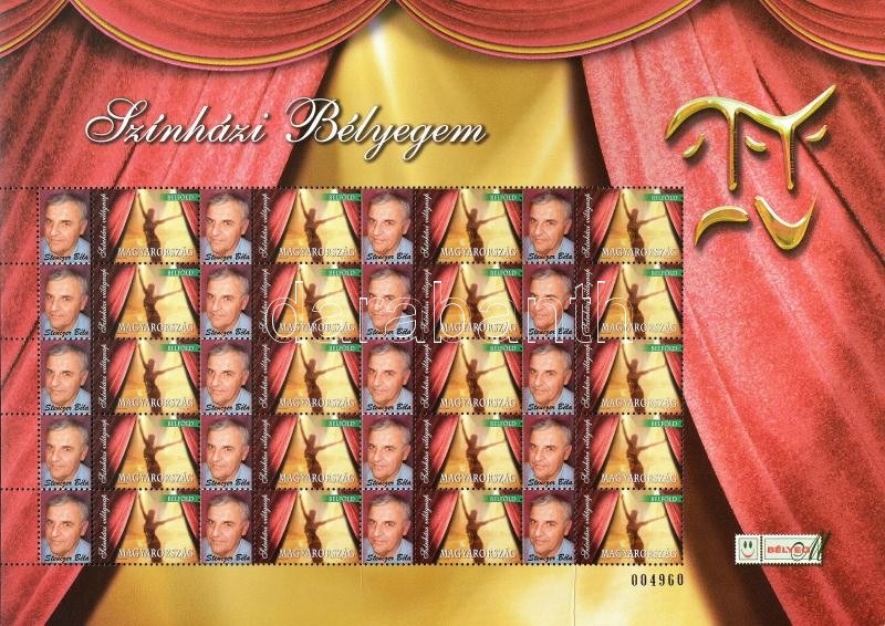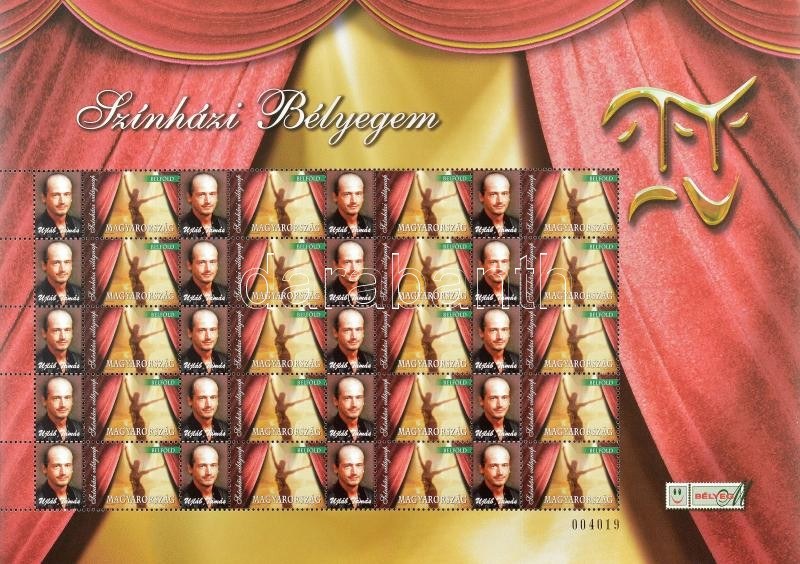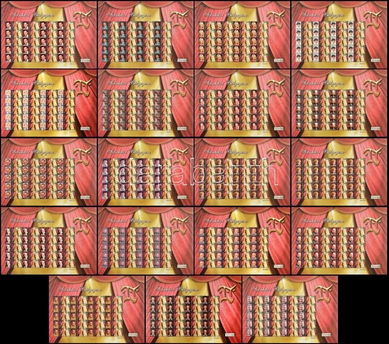 2011 Színházi bélyegem - Értékjelzés nélkül a 2007-es Színházi világnap I. változat megszemélyesített teljes ívsor, 19 különböző BELFÖLD feliratú ív (275.500) / Mi 5014 19 complete sheets with different personalised tab (13 íven gyártási ránc / 13 sheets with crease)
