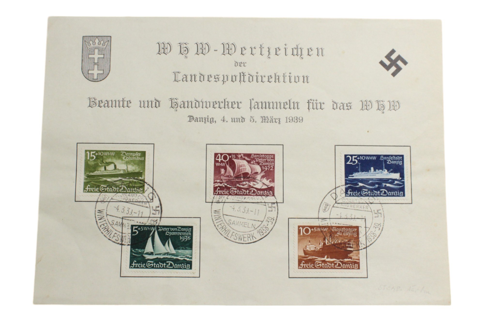 Arkusz z kompletną kolekcją znaczków pocztowych w Gdańsku dla WHW - 1939 r.