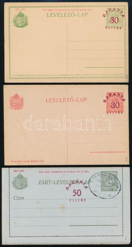 Baranya 1919 3 klf felülnyomott díjjegyes levelezőlap, használatlanok / 3 different overprintes PS-card, unused. Signed...
