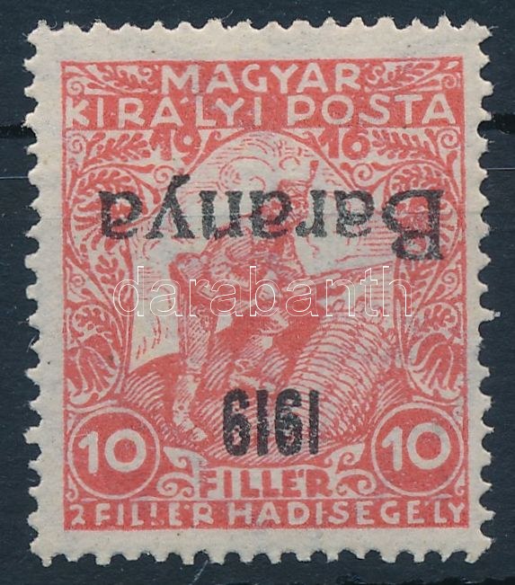 Baranya 1919 Hadisegély 10f fordított felülnyomással (22.000) / Mi 16 with inverted overprint. Signed...