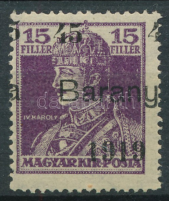 Baranya I. 1919 Károly 45f/15f próbanyomat / Mi VII. proof. Signed: Bodor