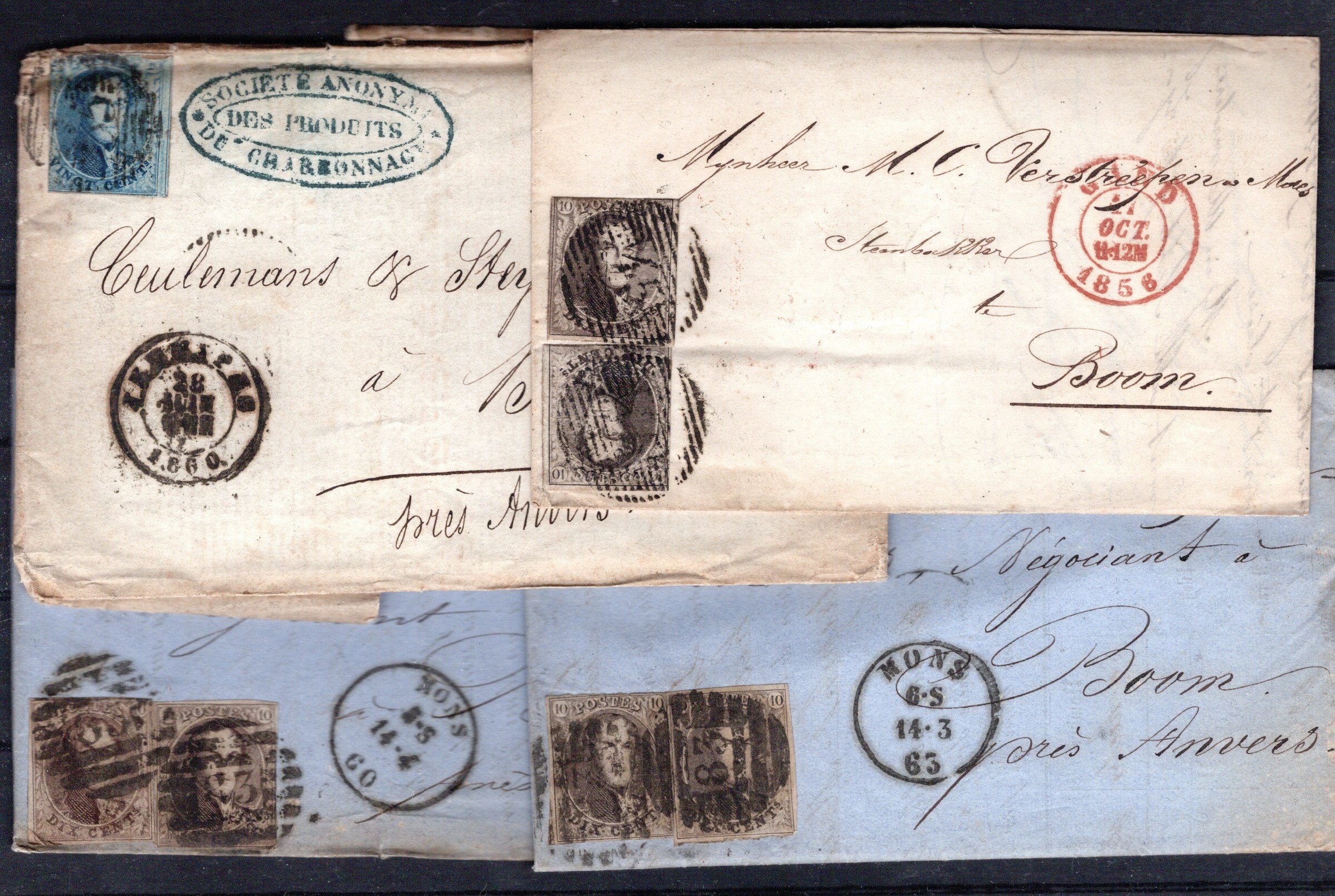 Konvolut v. 36 Briefen aus 1854-64 plus 4 Vorphilabelege, Firmenkorrespondenz alle nach Boom bei Antwerpen, Fundgrube