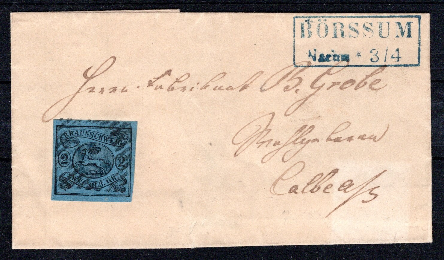 EF auf kl. Faltbrief aus BÖRSSUM (blauer Ra2) 3.4.1858
