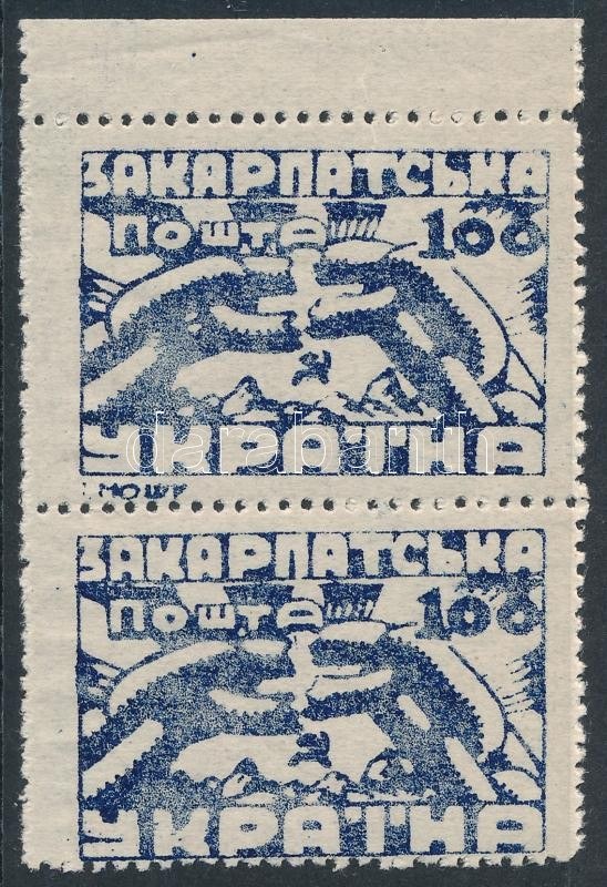 Kárpát-Ukrajna 1945 100f ívszéli pár, kék / margin pair, blue