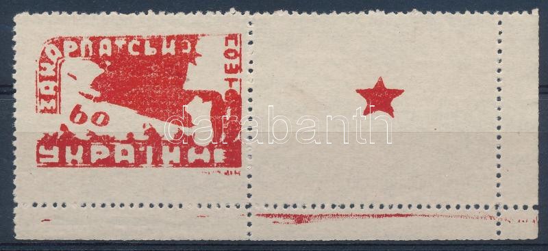 Kárpát-Ukrajna 1945 60f ívsarki bélyeg, csillagos üres mezővel / Carpathian-Ukraine 1945 60f corner piece with blank field