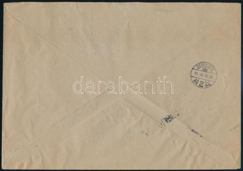 Nagyvárad II. 1945 Expressz levél 6 db Nagyvárad II. vágott bélyeggel bérmentesítve, Nagyváradról Debrecenbe (szakadás...