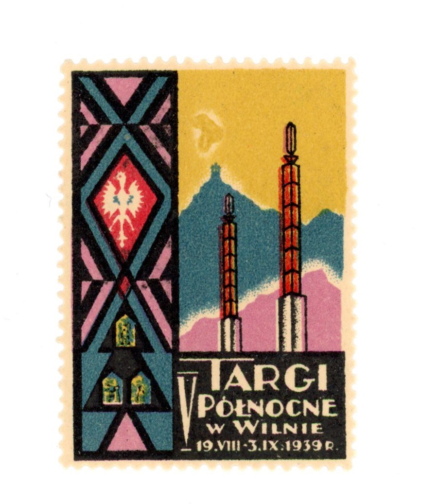 Nalepka okolicznościowa V Targi Północne w Wilnie, 1939. Niekasowane bez podlepki. Bardzo dobrze zachowane. Rzadkie
