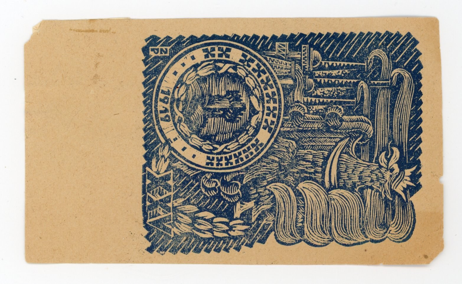 Poczta obozowa, Woldenberg, Oflag IIc; 500 rocznica bitwy pod Warną - znaczek unieważniony 10.XI kasownikiem okolicznościowym "WARNA" oraz znaczek z serii Hetmani na karcie ozdobionej drzeworytem