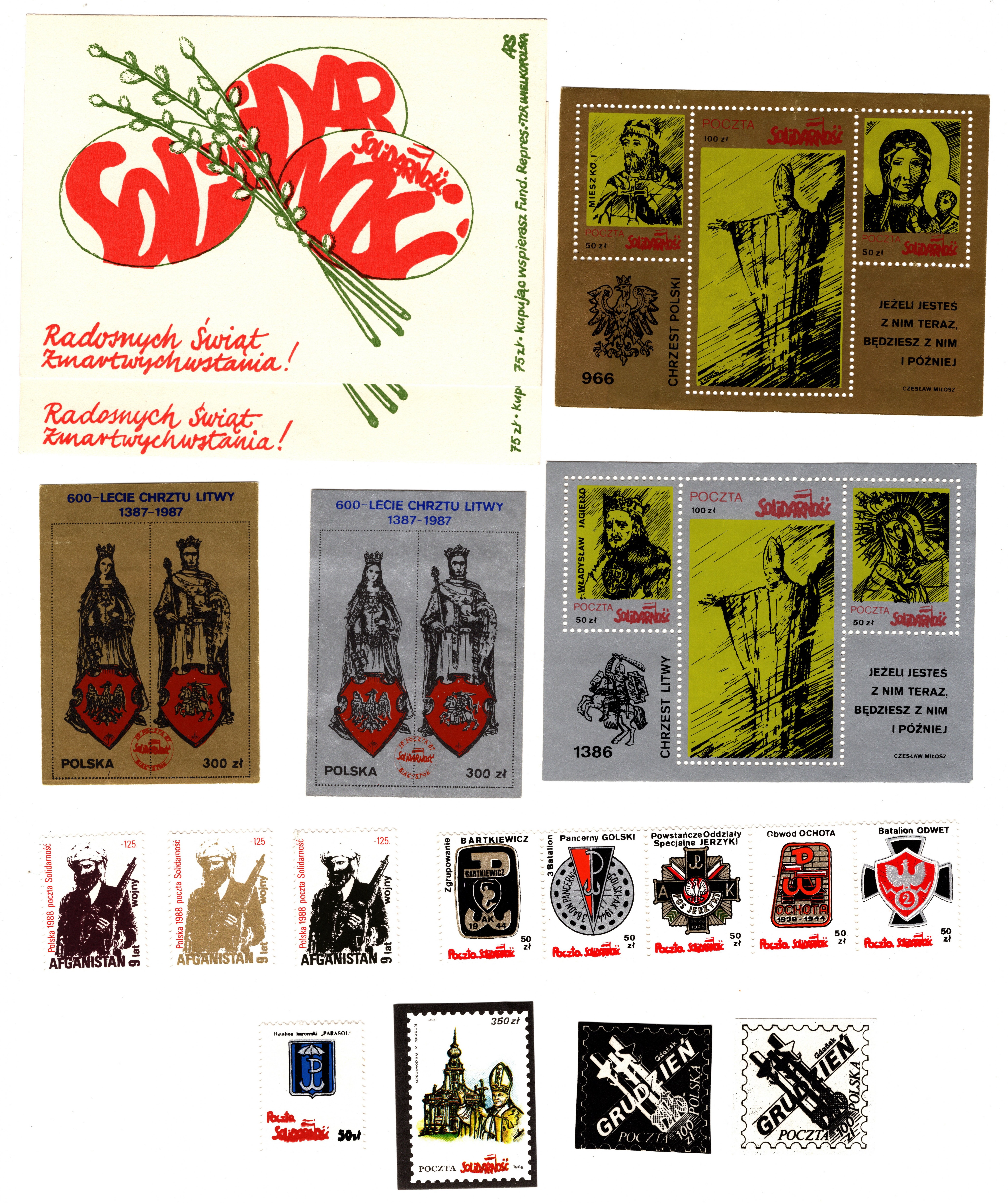 Znaczki upamiętniające m. in. chrzest Polski, chrzest Litwy.