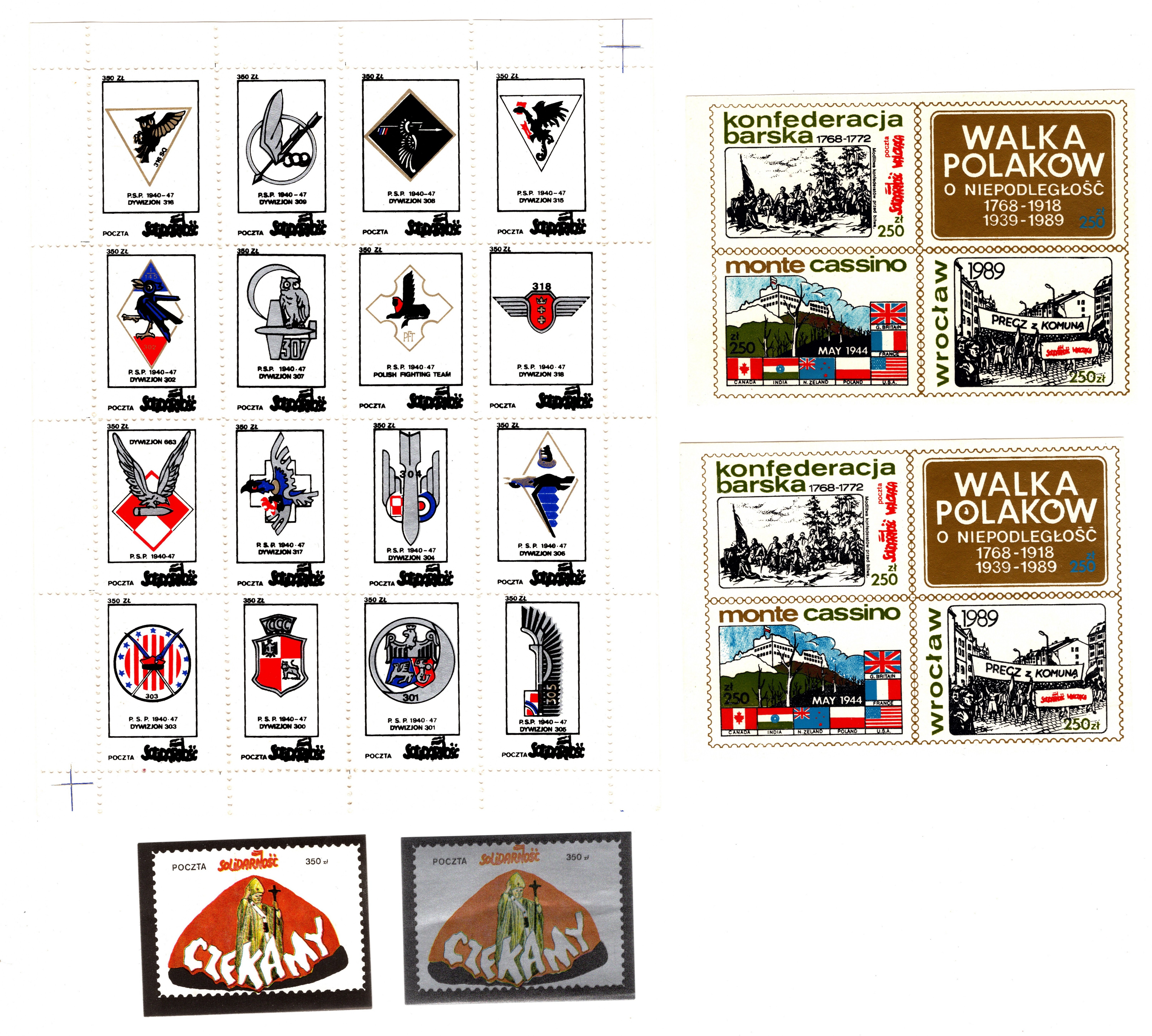 Znaczki pocztowe upamiętniające polskie dywizjony lotnicze, szczególnie te biorące udział w Bitwie o Anglię.