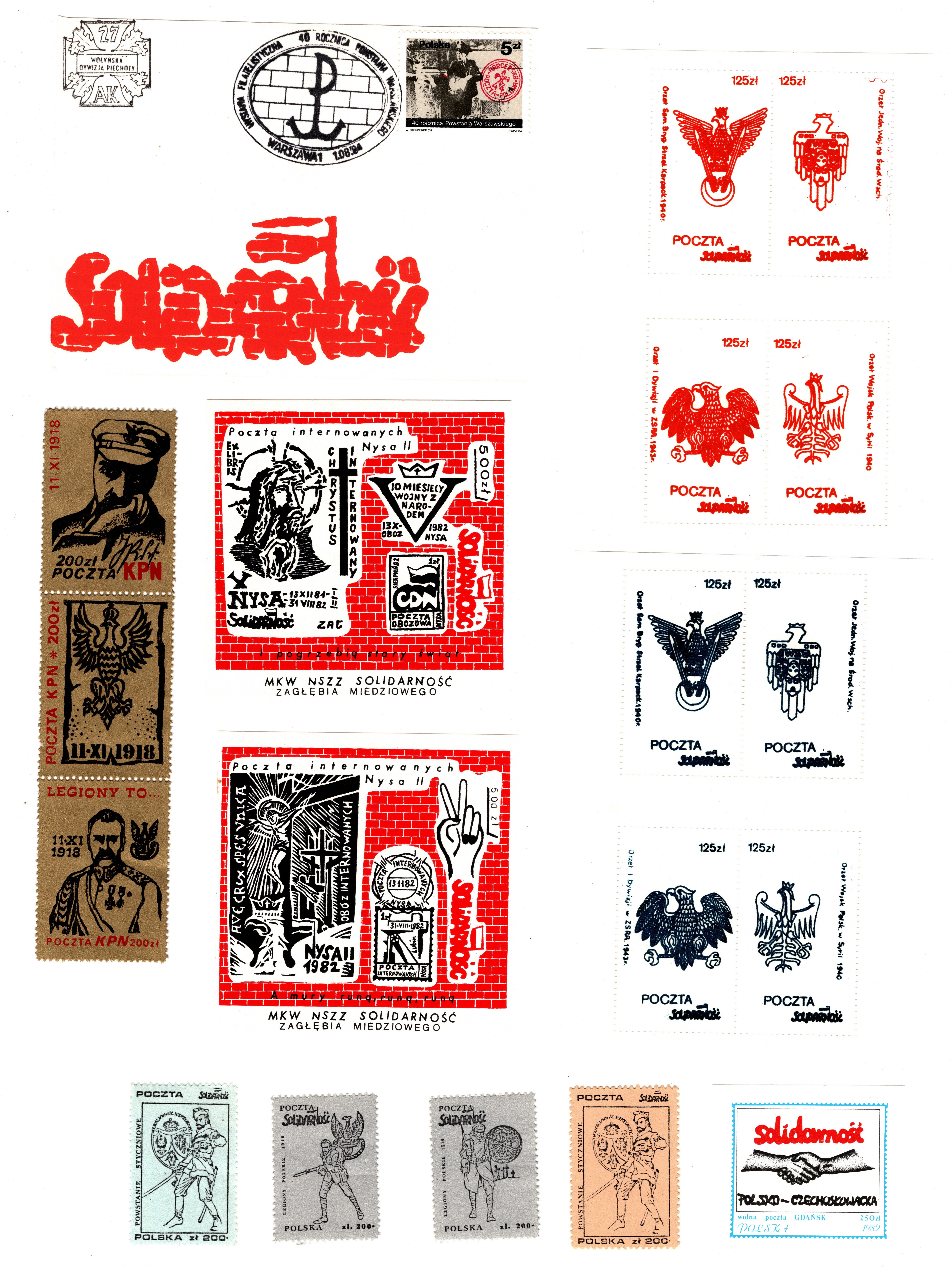 w zestawie znajdują się znaczki z wizerunkiem Piłsudskiego.