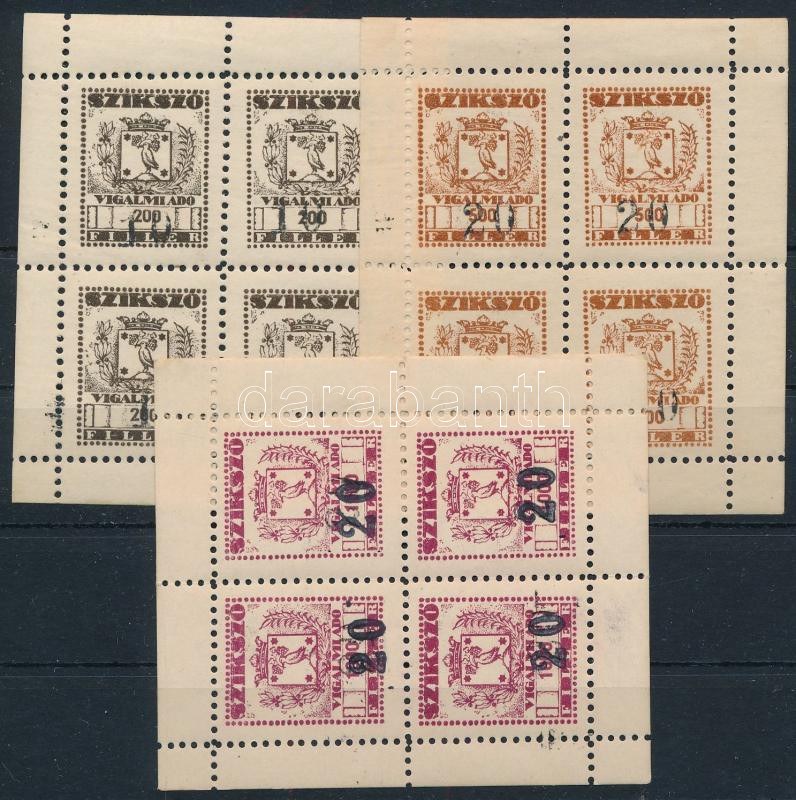 Szikszó városi illetékbélyeg 3 klf négyestömb