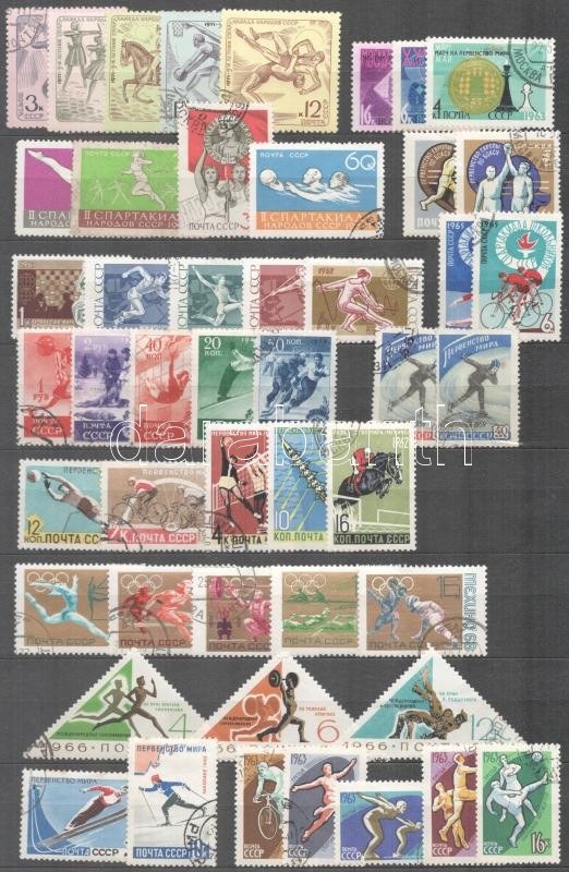 Szovjetunió sport motívum gyűjtemény, benne 20 klf sor, 12 klf blokk, 15 klf díjjegyes stb. ...