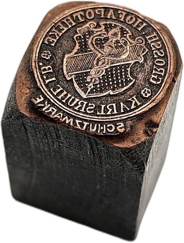 Matryca drukarska / tłok drukarski / pieczęć - Apteka Dworska Karlsruhe (Hof-Apotheke Karlsruhe ) - [ drukarstwo, księgarstwo, introligatorstwo]