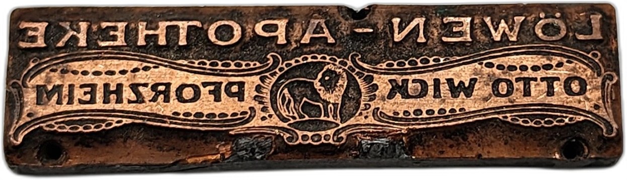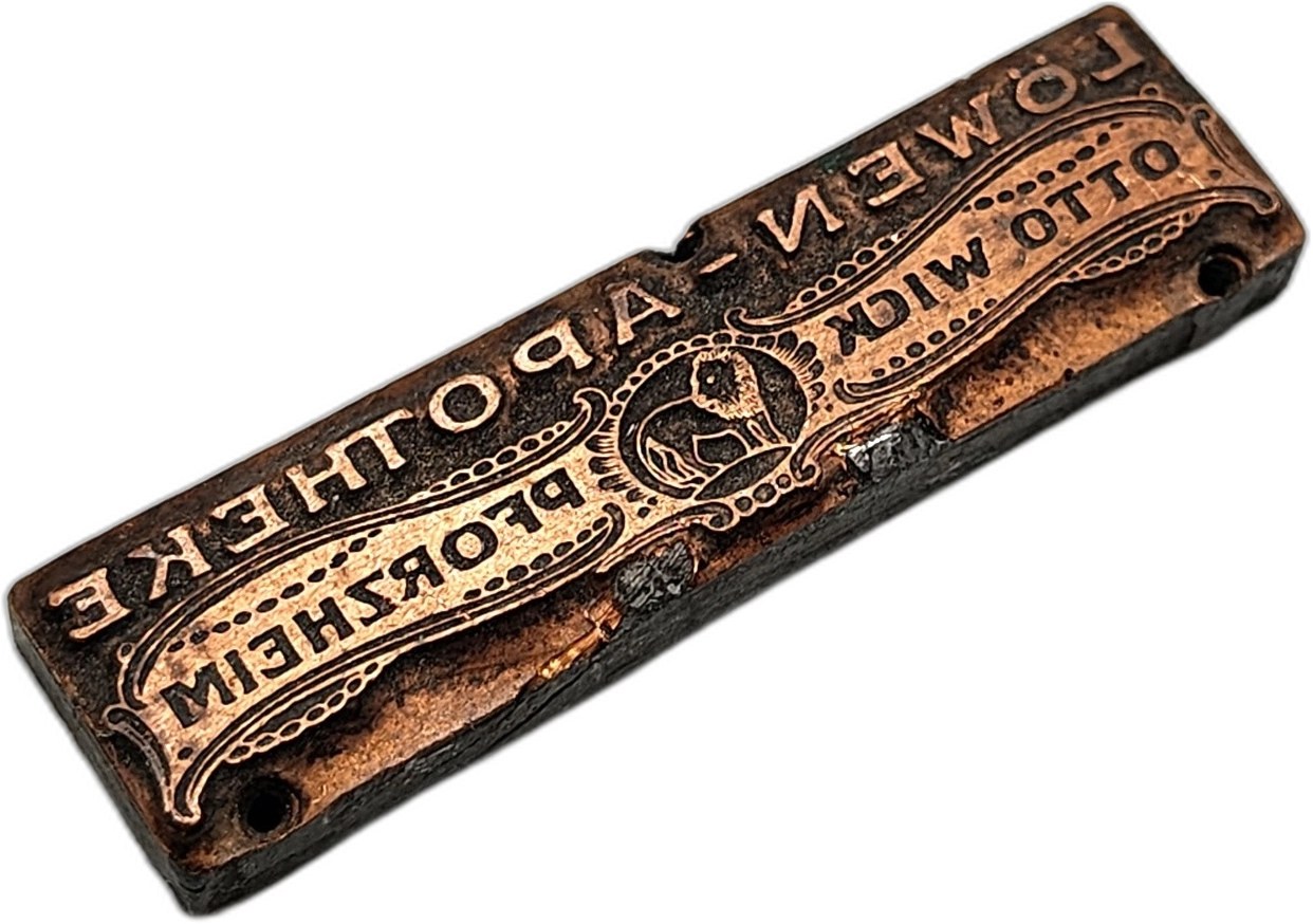 Matryca drukarska / tłok drukarski / pieczęć - Apteka Lwa (Lowen - Apotheke Pforzheim ) - [ drukarstwo, księgarstwo, introligatorstwo]