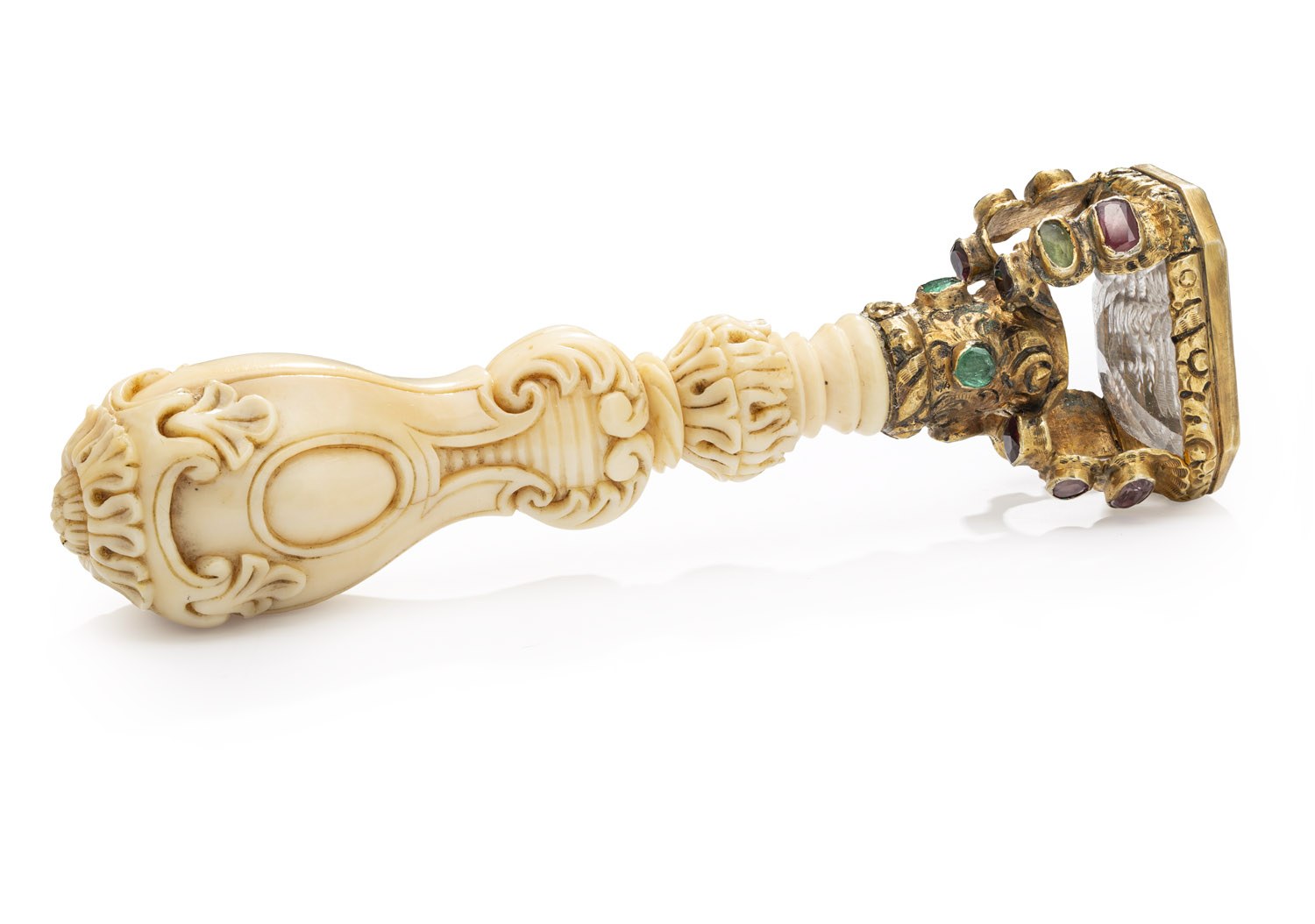 Oferowany tłok pieczętny jest diametralnie inny od pieczęci arystokracji z tamtej epoki. Warszawska rodzina Hauke składała się z nauczycieli, urzędników i oficerów, którzy nie zamawiali tak kosztownych pieczęci. Ze względu na jej drobny uchwyt i ozdobność oraz delikatność konstrukcji można go uznać za tłok pieczetny damski. Natomiast nieporównywalne do innych obiektów jest jego kosztowne wykonanie i dodanie kilkunastu kamieni szlachetnych. Bogactwo detali wskazuje na warsztat rosyjski, zresztą Julia Hauke mieszkała jako dama dworu carowej w Petersburgu. Jest to więc prezent księcia Hesji dla młodej Julii Hauke. Jej potomkowie to m.in. król Hiszpanii Juan Carlos czy król Wielkiej Brytanii Karol III.