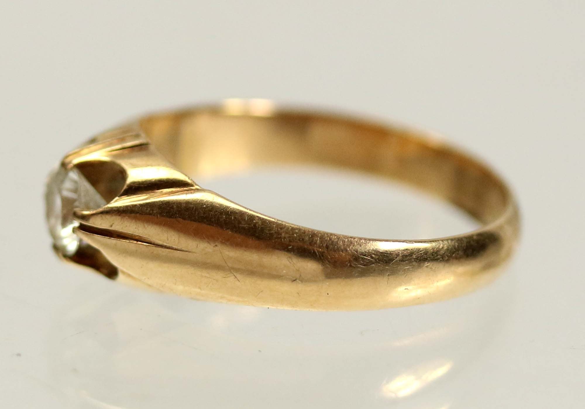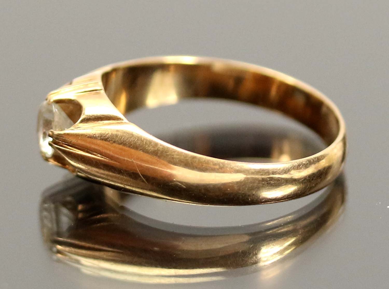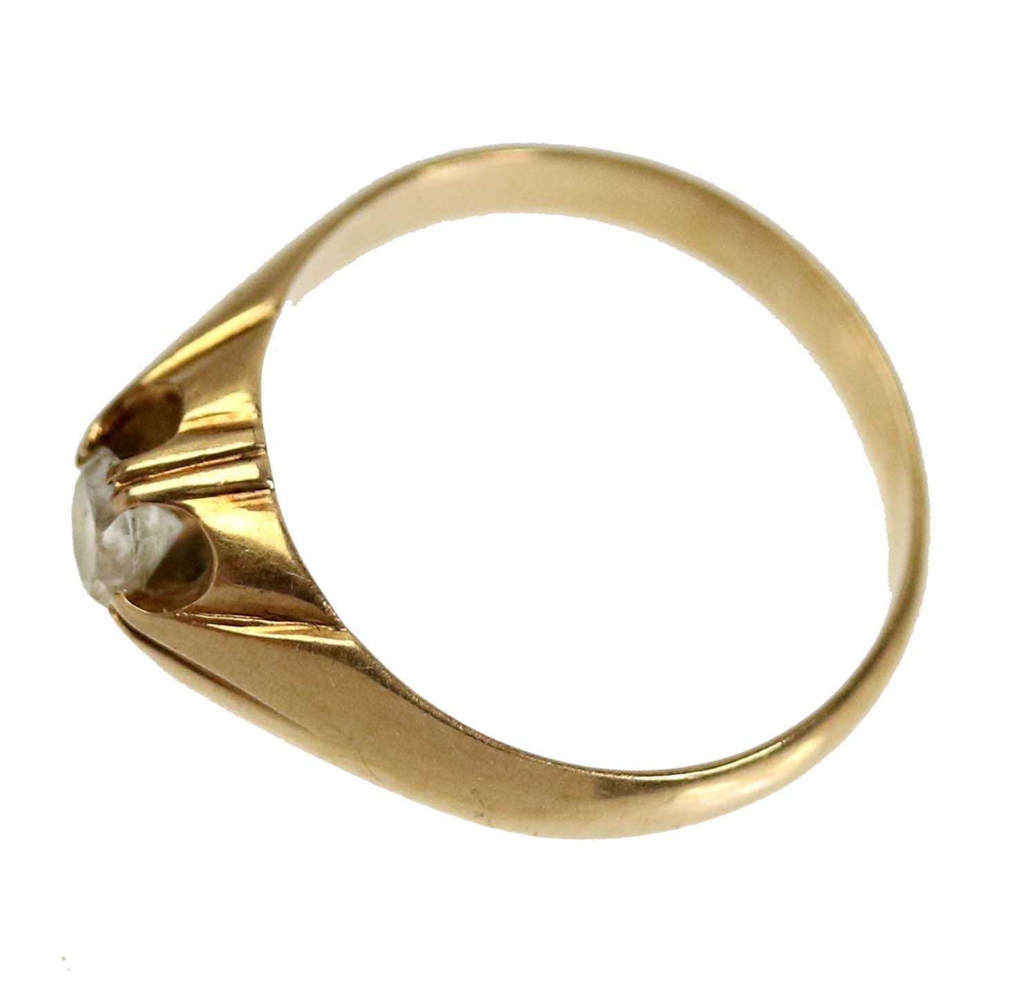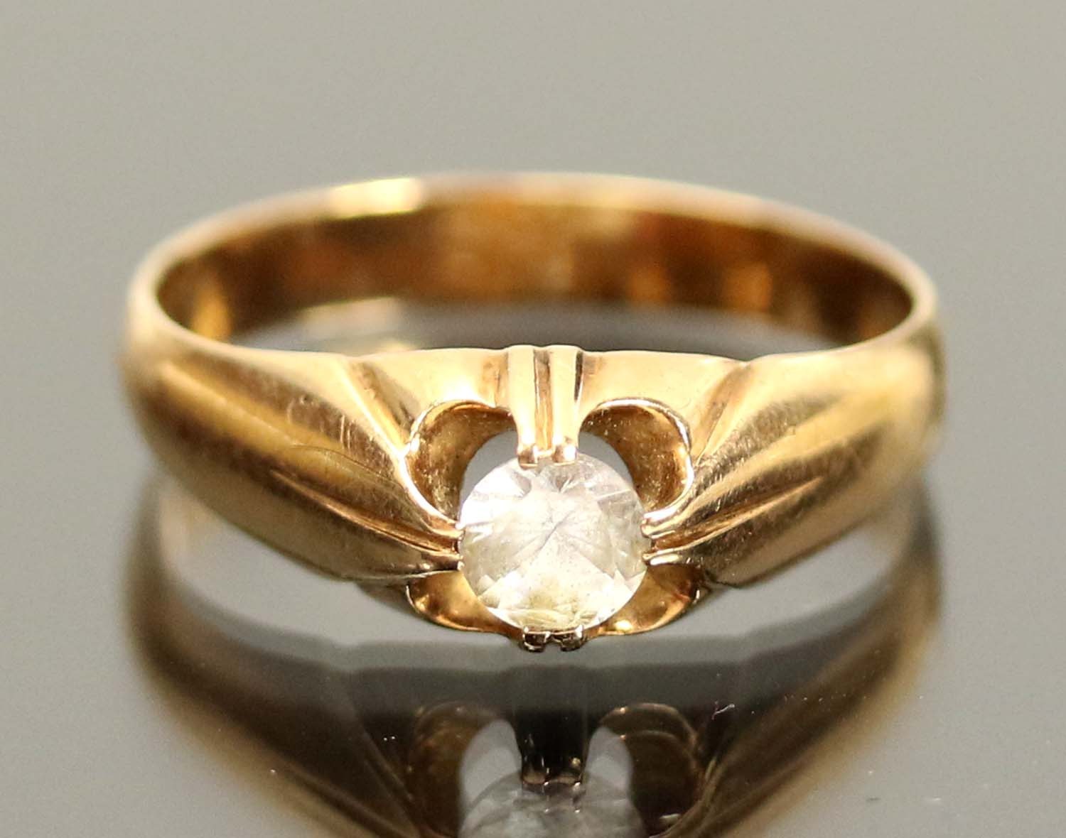 Pierścionek z cyrkonią, Rytosztuka. Złoto. Sygnatura wytwórcy oraz krakowska próba 3 sprzed 1963 r. Waga 3,25 g. Rozmiar pierścionka 14.