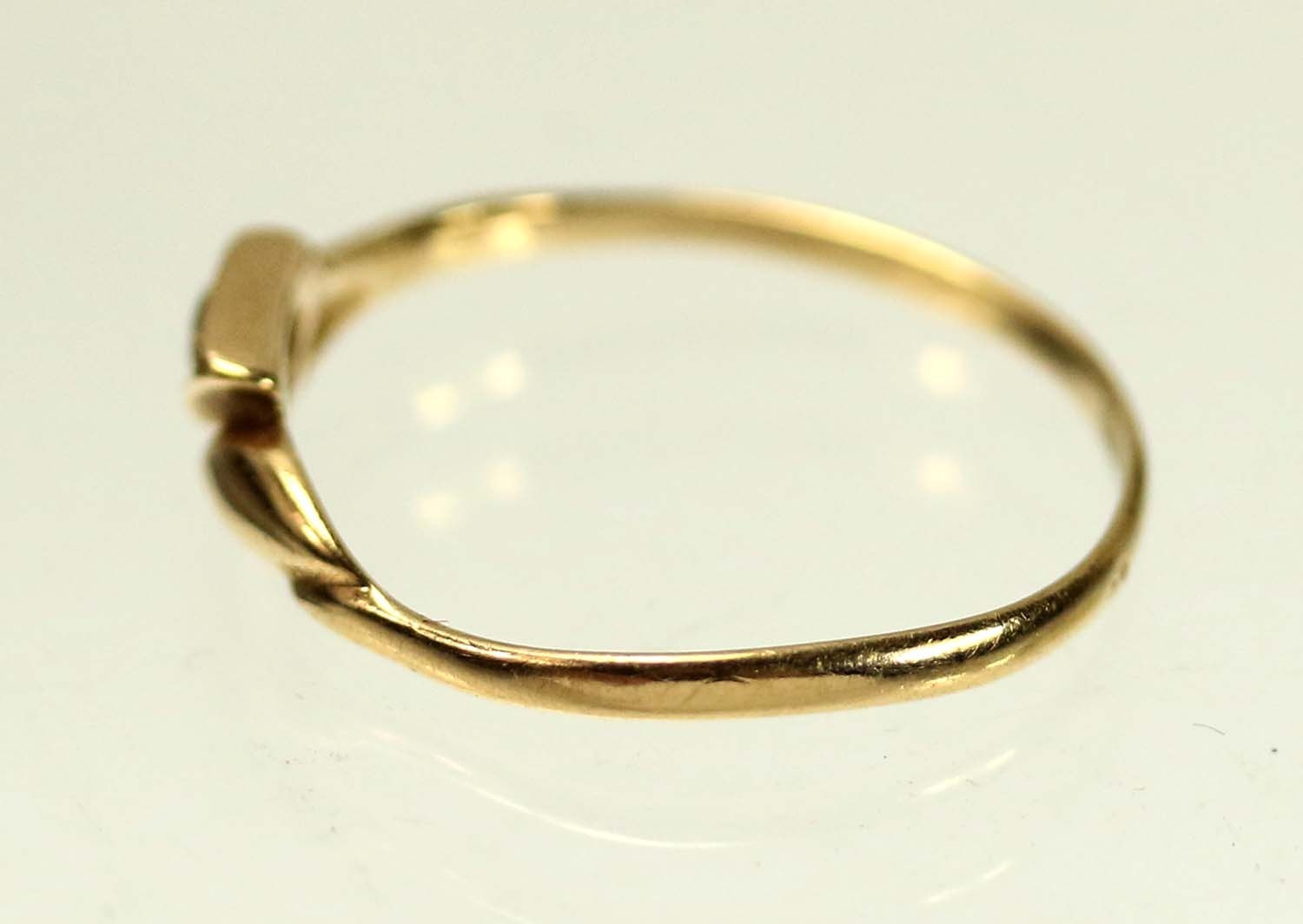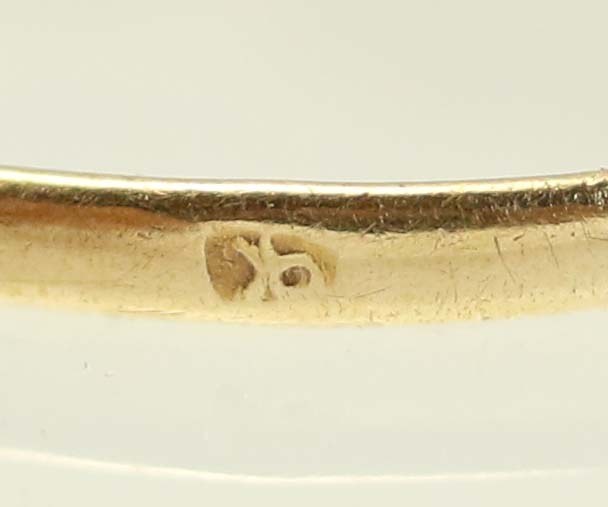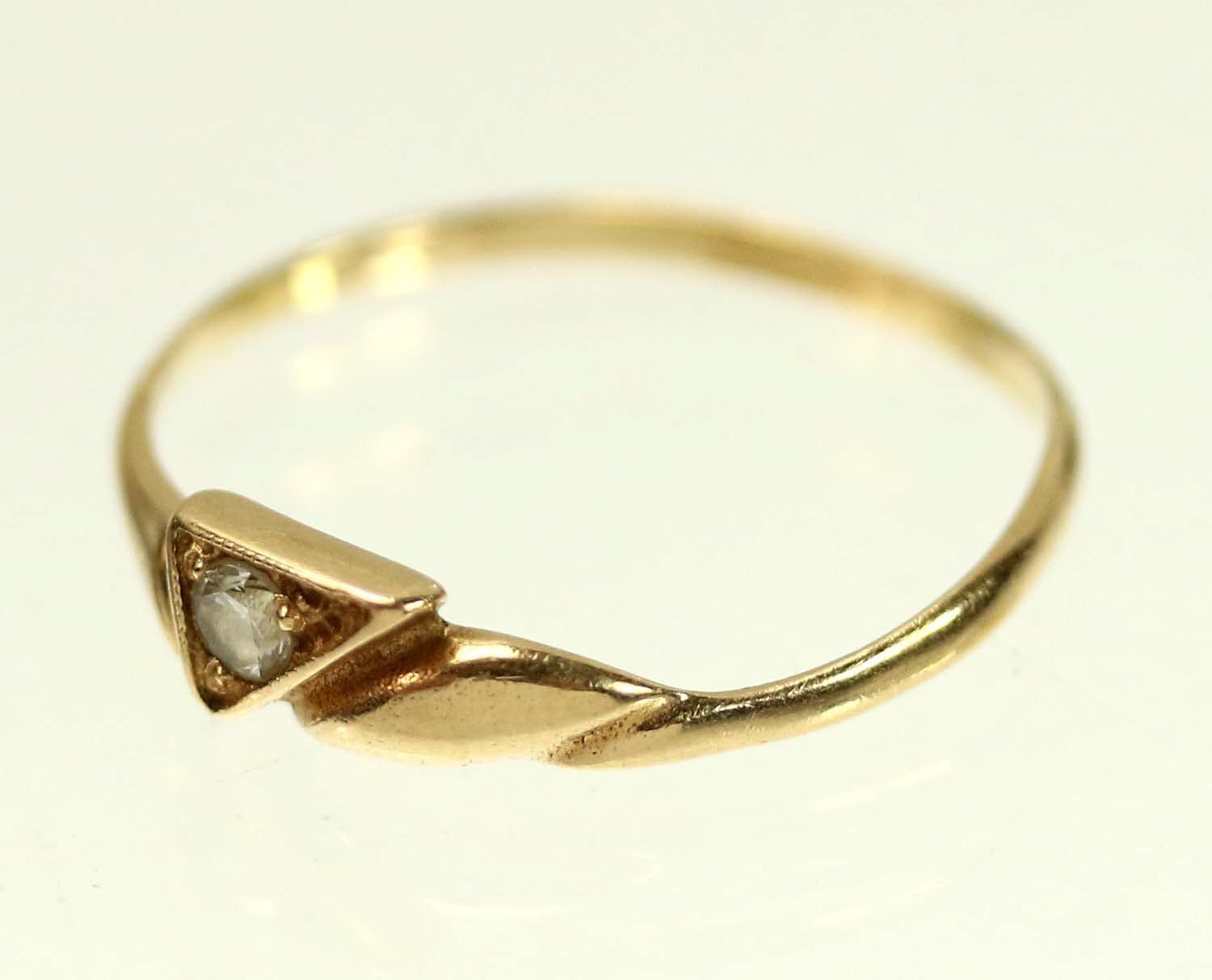 Pierścionek z cyrkonią. Złoto, sygnatura nieczytelna, brak informacji o próbie. Waga 1g. Rozmiar pierścionka 14.