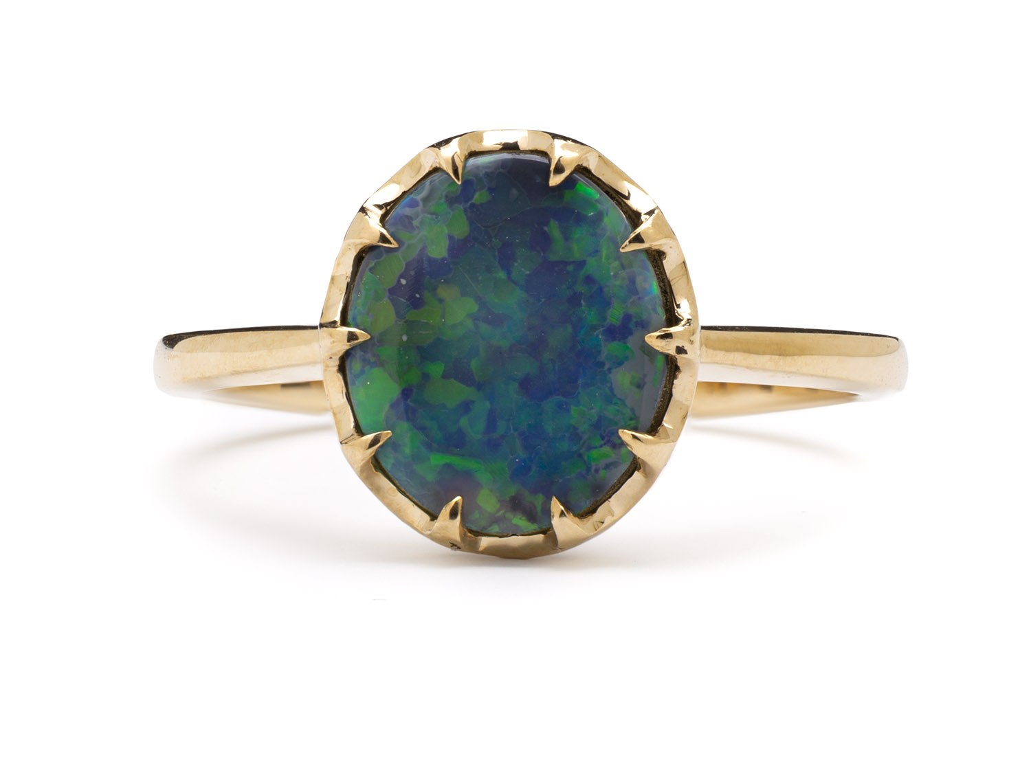 złoto pr. '3', 1 opal australijski 1,36 ct, krakowska punca probiercza, złotnik 'P.T' - Piotr Tomaszewski, masa: 3,18 g, rozmiar: 18*